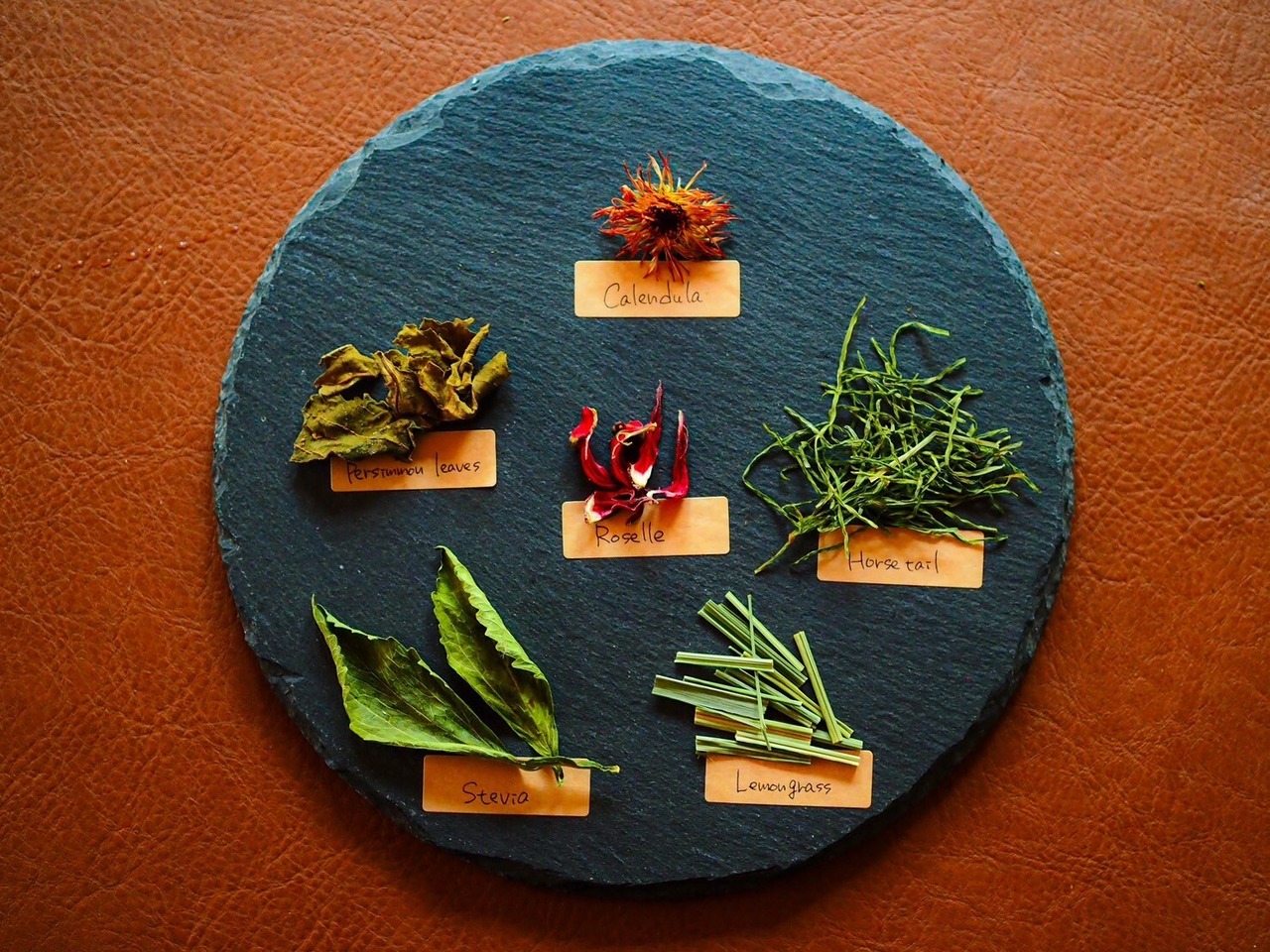 ローゼル、カレンデュラ、レモングラス、ステビア、すぎな、柿の葉
